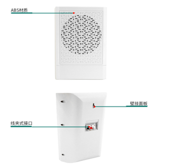 额定功率:10W 功率选择:10/5W 输入电压:100V 灵敏度:92±3dB 频响:110~15kHz 规格:260*180*120mm 材质:HIPS 重量:1.1kg 喇叭规格:6.5″*1 颜色:白色